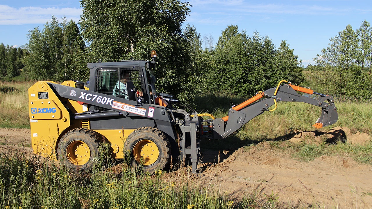 Навесной экскаватор предназначен для выполнения точных землеройных работ в стеснённых условиях: вдоль стен, заборов, зданий и инженерных объектов. Совместим с широким спектром мини-погрузчиков. Управление возможно из кабины или с выносного поста — удобно при детальной разработке котлованов, траншей и коммуникаций. Базовый ковш — 300 мм; доступны варианты под разные задачи. Аутригеры обеспечивают устойчивость техники на неровных поверхностях.
